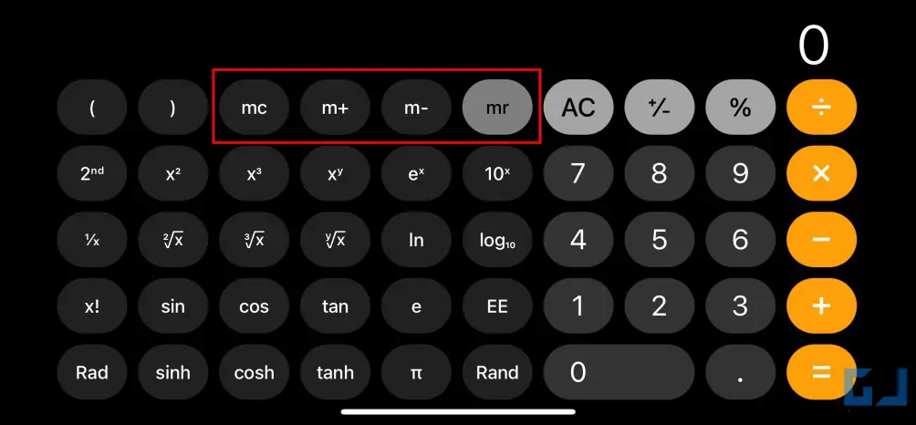 L’application Calculatrice a une fonction de mémoire en mode scientifique. Vous pouvez l’utiliser pour stocker des nombres dans la mémoire et les ajouter ou les soustraire du résultat actuel chaque fois que nécessaire. Voici comment vous pouvez utiliser la fonction Mémoire pour voir l’historique de la calculatrice sur votre iPhone :
