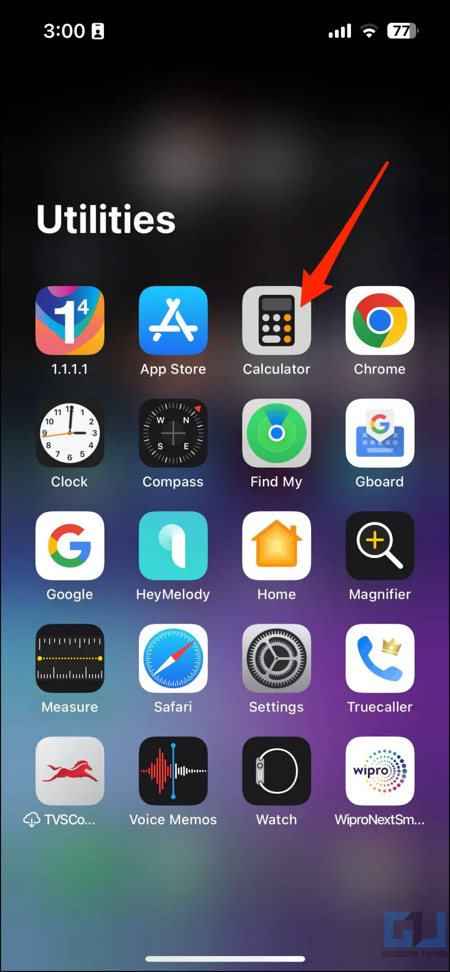 1. Déverrouillez votre iPhone et appui long l’icône de l’application Calculatrice. Si vous ne trouvez pas l’application sur l’écran d’accueil, recherchez-la dans la bibliothèque d’applications.