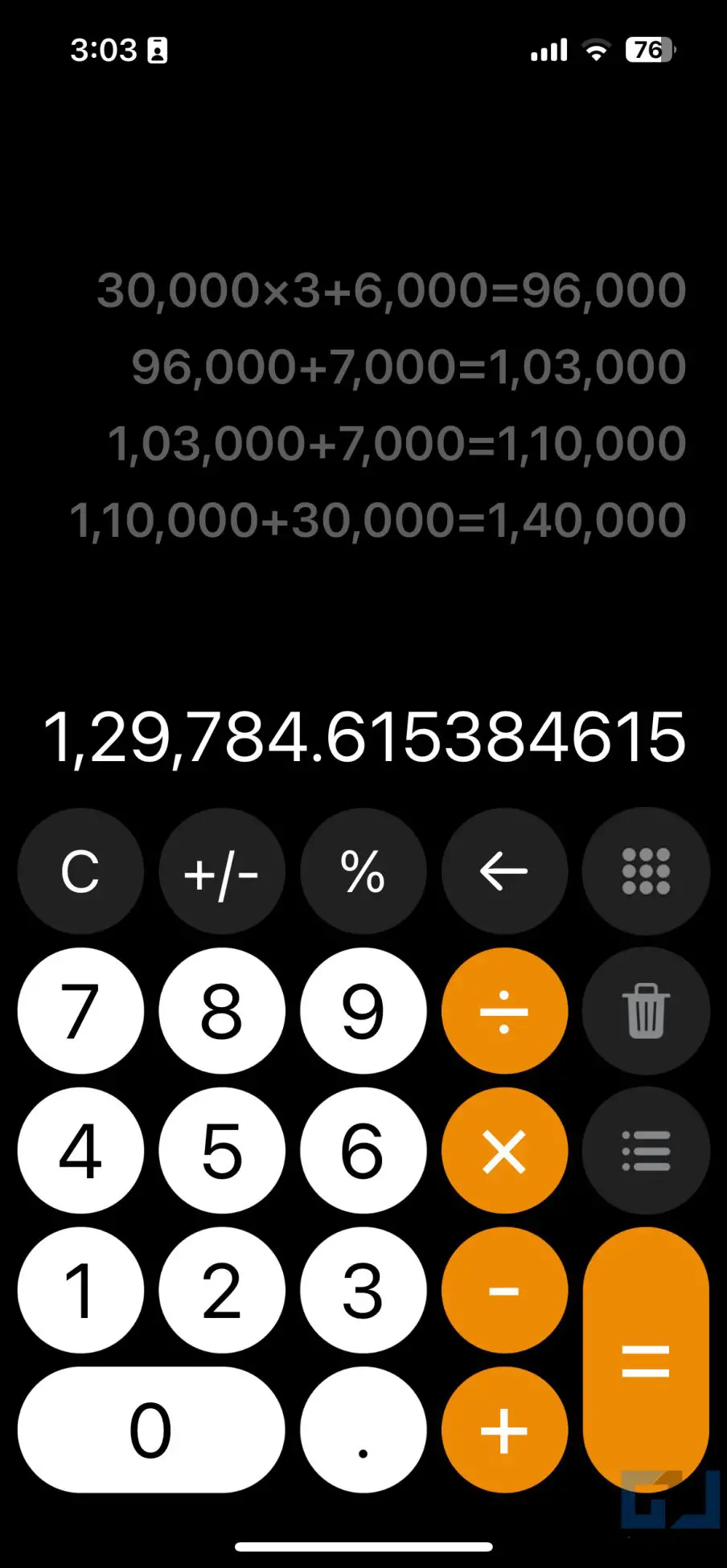 1. Ouvrez l’application Calculatrice sur votre iPhone. Calculez ce que vous voulez faire.