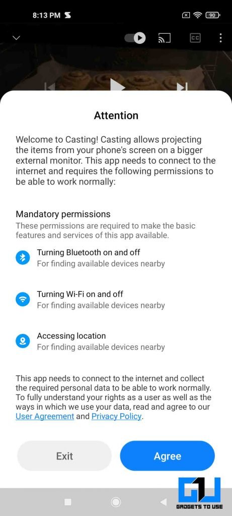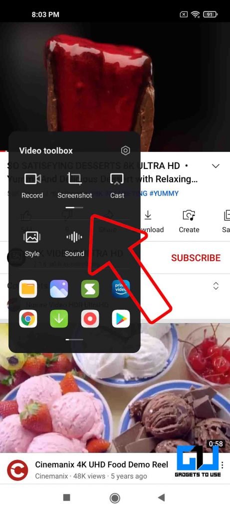 La barre d’outils vidéo MIUI aide également avec la fonctionnalité la plus utile pour la consommation de médias, qui la diffuse sur un écran plus grand comme un téléviseur. Il y a un bouton de diffusion facile présent dans la barre d’outils latérale. Sélectionnez l’option de diffusion. Choisissez votre cible de diffusion et lors de sa sélection, la vidéo se mettra en pause, puis reprendra une fois qu’elle sera diffusée sur l’écran sélectionné.