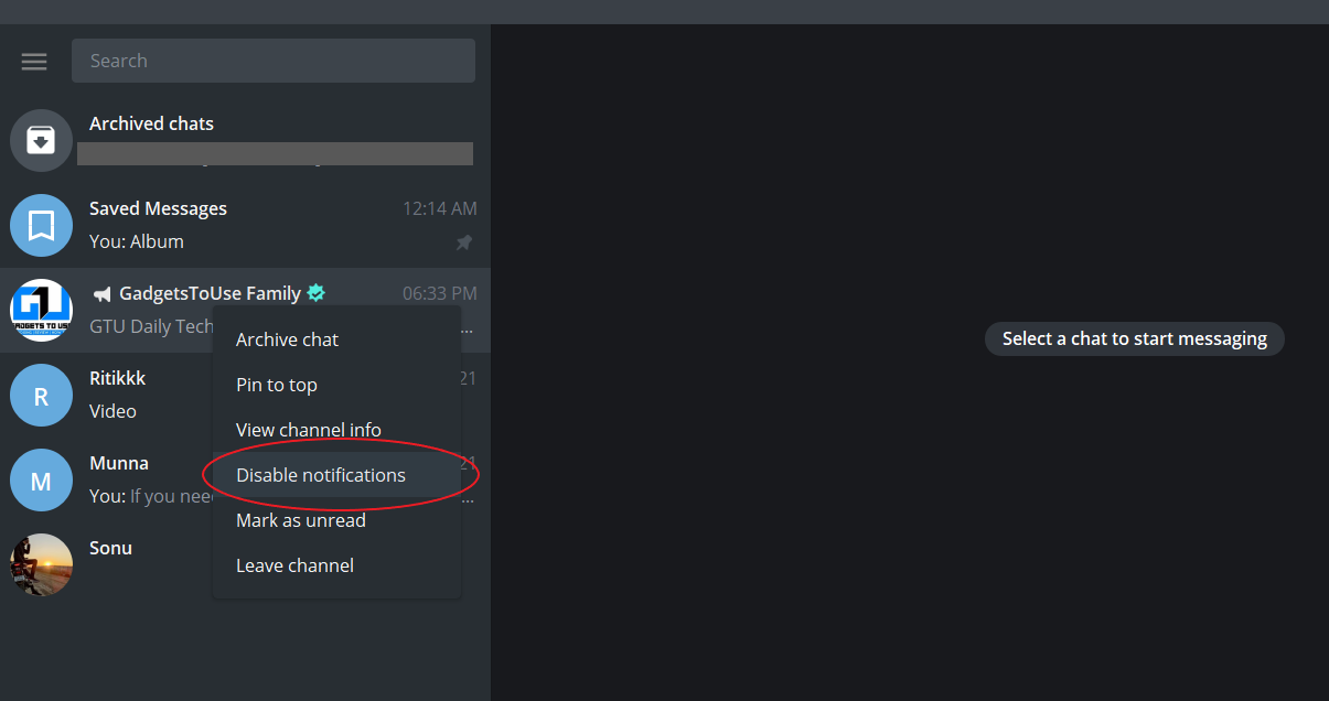 Telegram vous permet de désactiver ou de désactiver les notifications des discussions en tête-à-tête, des conversations de groupe ainsi que des canaux. Donc, si vous ne voulez pas d’alertes continues de ces discussions, vous pouvez les désactiver individuellement sur la plate-forme.